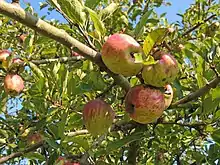 - Les insectes ravageurs sont les pucerons (puceron vert[20], lanigère et cendré), les acariens rouges, les anthonomes, le carpocapse, la noctuelle, la petite tordeuse de fruits, l'arpenteuse, la psylle du pommier.