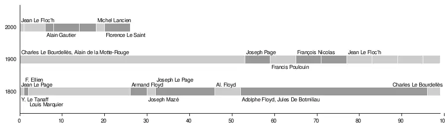 Frise chronologique de la succession des maires de Pommerit-le-Vicomte.