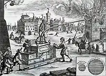 À la même époque, aux États-Unis, la ville de Jamestown, en Virginie, a été complètement détruite par un incendie au mois de . Un système de « surveillants » des incendies fut mis en place dans la ville de New York en 1648. Les surveillants avaient pour mission de patrouiller à travers la ville en inspectant les cheminées des bâtiments. Les tours de garde étaient réalisés par huit personnes, qui réveillaient les habitants pour combattre l'incendie, si nécessaire avec de simples seaux d'eau. À Boston, les importants incendies qui eurent lieu en 1653 et 1676 ont incité la ville à prendre d'importantes mesures pour lutter contre les incendies.