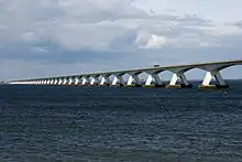 Le record mondial des ponts à poutres est quant à lui détenu par le pont Rio-Niterói au Brésil, construit en 1974, avec une portée de 300 mètres[29],[30]. En France, c'est le pont de Cornouaille à Bénodet (1972) qui détient le record avec 200 mètres de portée principale[31]. Il s'agit du mode de construction le plus répandu pour la plage allant de 5 à 200 mètres de portée.