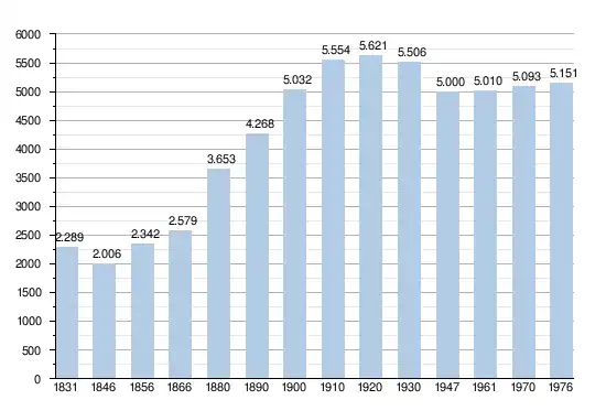 - Source: DGS , de 1831 à 1981=recensements population; à partir de 1990 = nombre d'habitants chaque 1 janvier