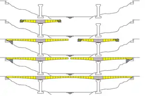 Durant la construction du pont, la précontrainte est utilisée pour le câblage des fléaux. Les câbles assurent la stabilité de cette phase provisoire de la construction. Après construction ces câbles sont dits « passifs ».