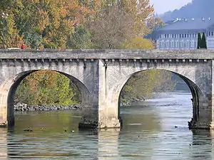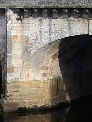 Le pont principal comprend neuf travées de 9,85 m d'ouverture portées par des piles épaisses de 4,60 m, prolongées par des avant-becs et arrière-becs triangulaires. Les voûtes sont en anse de panier avec des flèches décroissantes de l'arche centrale vers les culées. Les arches sont munies d'amples cornes de vache (voutes en cône tronqué), à l'amont et à l'aval.