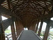 Cet ouvrage d'art pèse 130 tonnes et mesure 45 mètres de long sur 3 mètres de large. Il est renforcé avec de l'acier et constitue la plus grande structure au monde conçue en guadua[1].