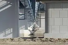 vue des piliers du pont, à gauche la nouvelle route, à droite le chemin de fer.