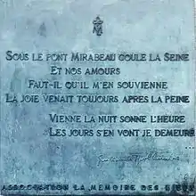 Il est aussi le titre d'un poème très connu de Guillaume Apollinaire, Le Pont Mirabeau.