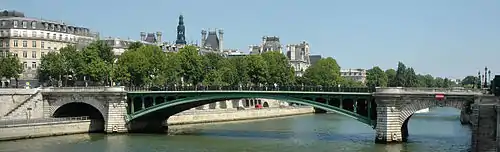 L'actuel pont, construit en 1853, lors des transformations haussmanniennes, mesure 105 m de longueur pour une largeur de 20 m, ses cinq arches initiales ayant été réduites à trois en 1912, dont une arche centrale métallique de 60 m.