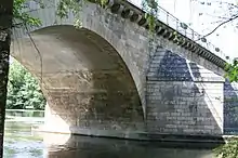 L'adjonction en 1864 à l'amont des arches no 5 à no 8 de massifs de maçonnerie a permis de porter la largeur de l'ouvrage entre tympans à 6,90 m[9].