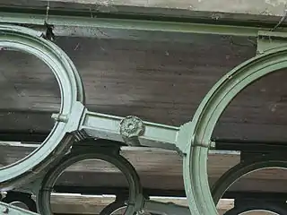 Il repose sur quatre arcs en fonte creux qui s'appuient sur deux culées très épaisses en maçonnerie, fondées sur du béton[2]. Ils sont reliés au tablier par des anneaux de diamètre décroissant[5]. Les arcs sont constitués de portions de demi-cylindres de section ovale, boulonnés les uns aux autres, de telle sorte que les joints de deux demi-cylindres se trouvent chaque fois au milieu du demi-cylindre opposé[2].