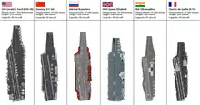 Sur les porte-avions construits depuis les années 1950, la piste d'appontage et les catapultes sont bien distincts comme sur les classe Nimitz où l'angle est de 9°.