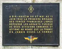 - une plaque commémorative rappelle les exploits de la première brigade des Forces françaises libres lors de la bataille de Bir Hakeim, du 27 mai au .