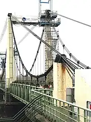 L'actuel ouvrage, construit par Baudin Chateauneuf et achevé en 1949, a subi des travaux durant les années 2002 et 2003 avec notamment la restauration de certaines têtes de pylônes, et la restauration des blocs d'ancrage des câbles de suspension côté Montjean-sur-Loire[5], réalisée par la même entreprise.