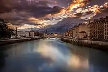 Pont de la citadelle avec le quartier Saint-Laurent et le Mont Saint-Eynard | |||||