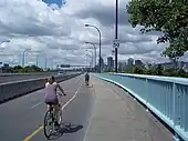 Le pont est emprunté par l'avenue Pierre-Dupuy. Il comporte quatre voies de circulation, soit deux par direction, lesquelles sont séparées par une ligne simple centrale. Une partie du pont, du côté nord, est délimitée par un muret de béton et sert de piste cyclable. Un trottoir est également aménagé de ce côté.