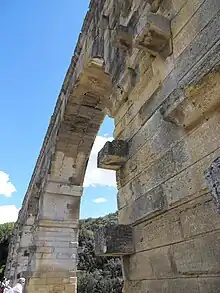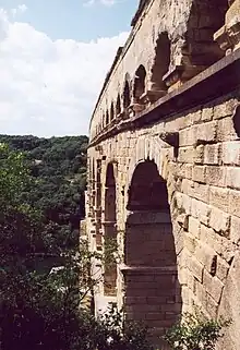 Le pont du Gard est un pont à trois niveaux destiné au passage d'un aqueduc romain. Il est situé à Vers-Pont-du-Gard entre Uzès et Remoulins, non loin de Nîmes, dans le département français du Gard. Il enjambe le Gardon. Probablement bâti dans la première moitié du Ier siècle, il assurait la continuité de l'aqueduc romain qui conduisait l’eau d’Uzès à Nîmes. D'après les dernières recherches, il aurait cessé d'être utilisé au début du VIe siècle.