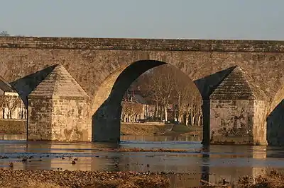 En France, parmi les ponts médiévaux les plus remarquables peuvent être mentionnés le pont Saint-Bénézet[22] à Avignon sur le Rhône (1177-1187)[22], l'ancien pont de Carcassonne[23] sur l'Aude (1180)[23], le Petit-Pont[24] à Paris sur la Seine (1186)[24], le pont Valentré[25] à Cahors sur le Lot (1231), le pont Saint-Martial[26] à Limoges sur la Vienne (1215)[26],[3].