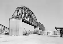 - Le pont n'a jamais été achevé, pour des raisons de financement ou de l'impossibilité d'acquérir des terrains alentour pour les rampes d'accès.