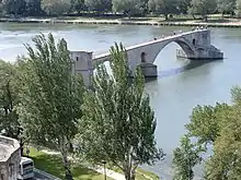 - Le Pont Saint-Bénézet en Avignon sur le Rhône. Plusieurs arches ont été emportées par les crues du fleuve.