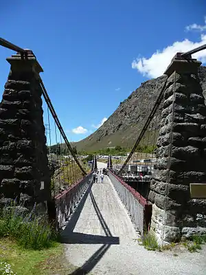 Le pont a été terminé à la fin de 1880, et constitue une route d'accès essentielle pour les champs aurifères de l'Otago central. Il fut remplacé par un nouveau pont autoroutier sur la "State Highway 6 " en 1963. Il est classé comme monument historique par le New Zealand Historic Places dans la catégorie I des lieux historiques[2].