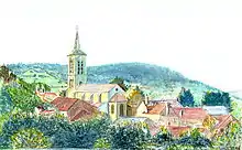 Vue du village de Pontaubert depuis Avallon, par Jean Rolley.