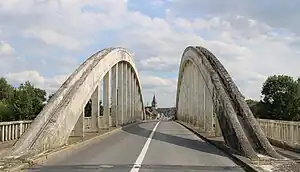 Le pont sur l'Oise en reconstruction vers 1920.