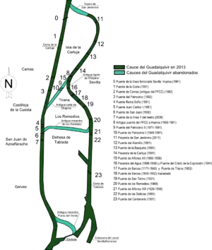 Séville, ville d'Andalousie (Espagne), est traversée du nord au sud par deux cours d'eau : le Guadalquivir et sa darse, également appelée canal Alphonse-XIII. De nombreux ponts les traversent.