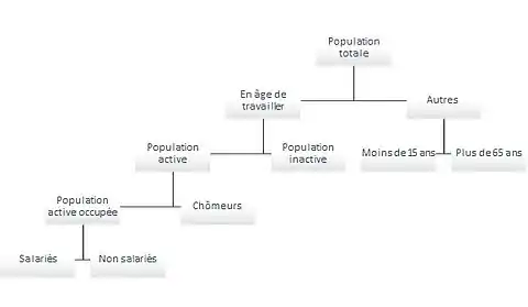 La population active est définie par l'Organisation internationale du travail comme l'ensemble des personnes agées de plus de 15 ans[3] et qui ont travaillé non bénévolement durant une semaine de référence. Les personnes ayant un emploi, mais ne l'exerçant pas pour différentes raisons, comme un congé maternité, ainsi que les chômeurs, font également partie de la population active[4].