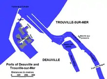 Pour compenser la saturation du bassin de plaisance de Port Morny, les architectes Jacques Labro et Jean-Jacques Orzoni construisent entre 1972 et 1975 le complexe résidentiel-marina de Port Deauville (inspiré du vieux bassin d'Honfleur) étendu sur plus de 10 hectares, entre l'estuaire de la Touques et la plage des Planches, pour une capacité de 900 bateaux, avec commerces, chantier naval, club nautique, et école de voile du Deauville Yacht Club (DYC)[3]...