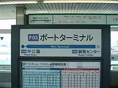 Port Terminal est desservie par les rames effectuant la relation Sannomiya Aéroport de Kobe et la relation en boucle de Sannomiya à Sannomiya via Kita Futō[2].