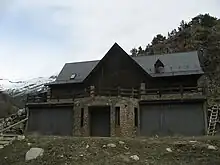 Ruines de l'ancienne station du téléphérique qui transportait du bois coupé de la forêt de Bonabé pour la râperie de Salau. Ces ruines ont été cristallisées depuis. | |||