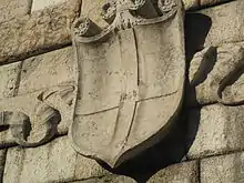 Le lion de Saint Marc a été détruit par les Jacobins en 1801 et remplacé plus tard par un groupe sculptural avec un blason au centre portant l'aigle impériale à deux têtes, plus tard arasée, surmonté d'une couronne[17].