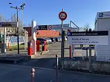 La station Porte d'Arras est mise en service lors de l'ouverture à l'exploitation de la ligne 1 bis entre les stations Saint-Philibert et Gares[alpha 1],[1]. Elle doit son nom au fait qu'elle se situe près de l'ancien emplacement de la porte d'Arras, disparue lors de la destruction des remparts de la ville[2]. Le bâtiment présente les caractéristiques d'une architecture futuriste : bâtiment massif, déstructuration géométrique global du bâtiment (rupture avec l'architecture traditionnelle), l'impression de vitesse et de mouvement donnée par les lignes, une présence massive des vitres et de l'ouverture vers l'extérieur et une montée vers le ciel avec ses lignes verticales. Le bâtiment ne présente aucun ornement ou sculpture particulière, ce qui focalise l'œil du spectateur et du passager sur l'architecture typique de cette porte[réf. souhaitée].