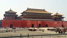La porte du Midi ou Wumen (chinois simplifié : 午门 ; chinois traditionnel : 午門 ; pinyin : ; Mandchou : ᠵᡠᠯᡝᡵᡤᡳ