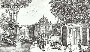 Édifiée en 1562, elle s'est aussi appelée porte du Canal et, après une refonte en 1773, fut détruite en 1812.