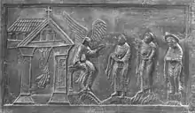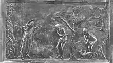 ![]() | ![]() | Adam et Ève correspondent au Christ et aux Femmes au tombeau, interprétées au sens figuré comme les "Épouses du Christ"[3]. |