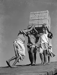 De grands travaux d'ingénierie ont été créés uniquement par la force des bras dans les jours précédant les machines ou même les brouettes et les wagons; des effectifs importants d'ouvriers et de porteurs achèveraient des travaux de terrassement impressionnants en chargeant manuellement la terre, des pierres ou des briques dans des paniers sur le dos.