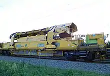 Le portique, contrôlé par un opérateur en cabine, alimente le train-usine (train de construction) depuis les rames de wagons de traverses. Il transporte au moins vingt traverses sur le convoi en se déplaçant rapidement sur un chemin de roulement présent sur les wagons de transport de traverses et sur le train-usine.