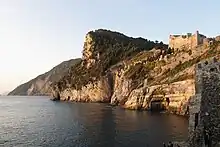 Baie rocheuse et château Doria à la pointe de Porto Venere.