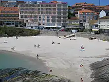 Trois plages sont situées le long de la côte de la ville : la plage de Portonovo (également connue sous le nom de plage de Baltar), la plage de Caneliñas et la plage de Canelas.