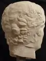 On peut voir la ligne de démarcation entre la face avant de la tête et la partie originellement couverte par le voile de la toge.