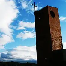 Vue sur le Plaza, l'église et la fontaine. | ||||