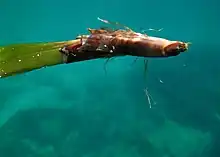 L'anémone Paractinia striata, symbiote des feuilles de posidonies.