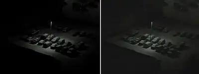 Pendant le tournage, des dispositifs comme le Panaflasher de Panavision, qui est monté entre le corps de la caméra et le magasin, et le Varicon de Arriflex, un filtre luminescent à intensité ajustable, permettent d'appliquer cette technique en temps direct.