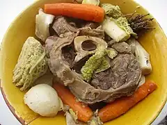Pot-au-feu de bœuf, chou, poireau, carotte, oignon, et céleri | |