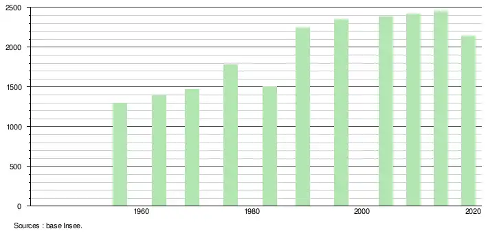- Population municipale légale en vigueur au , millésimée 2019, définie dans les limites territoriales en vigueur au , date de référence statistique : .