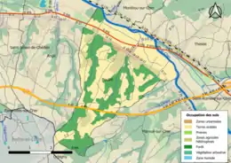 L'occupation des sols est marquée par l'importance des espaces agricoles et naturels (97,2 %). La répartition détaillée ressortant de la base de données européenne d'occupation biophysique des sols Corine Land Cover millésimée 2012 est la suivante : terres arables (25,4 %), cultures permanentes (25,6 %), zones agricoles hétérogènes (10,2 %), prairies (0,5 %), forêts (33,9 %), zones urbanisées (2,8 %), eaux continentales (2,1 %)[14].