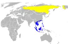 L'été il vit en Sibérie (Russie) et en Alaska (USA), au nord de la Mongolie et dans le nord-est de la Chine ; l'hiver il vit au sud de la Chine et en Asie du Sud-Est.