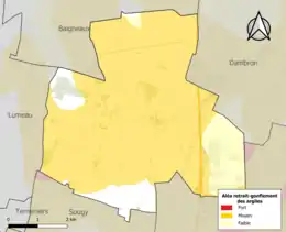 Le retrait-gonflement des sols argileux est susceptible d'engendrer des dommages importants aux bâtiments en cas d’alternance de périodes de sécheresse et de pluie. 81 % de la superficie communale est en aléa moyen ou fort (52,8 % au niveau départemental et 48,5 % au niveau national). Sur les 53 bâtiments dénombrés sur la commune en 2019, 52 sont en aléa moyen ou fort, soit 98 %, à comparer aux 70 % au niveau départemental et 54 % au niveau national. Une cartographie de l'exposition du territoire national au retrait gonflement des sols argileux est disponible sur le site du BRGM[16],[Carte 2].