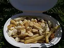 La poutine est un plat de la cuisine québécoise composé, dans sa recette classique, de trois éléments : des frites, du fromage en grains[1] et de la sauce brune[2]. La poutine tire son origine du Centre-du-Québec à la fin des années 1950[2].