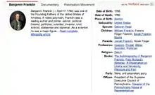 Dossier Powerset pour Benjamin Franklin. Powerset renvoie un dossier pour de nombreux sujets. Powerset rassemble des informations provenant à la fois de l'article de Wikipedia et de Freebase.